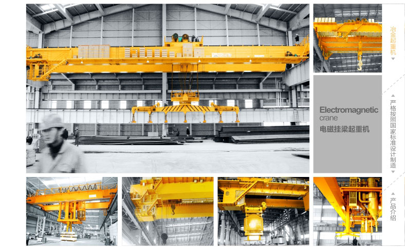 1、 本起重機(jī)帶有可拆卸的電磁盤,特別適用于搬運(yùn)具有導(dǎo)磁性的黑色金屬制品與材料,如鋼錠、型鋼、生鐵塊等。主要用于鋼鐵企業(yè)軋線、成品庫,船廠鋼料堆場、下料車間等。