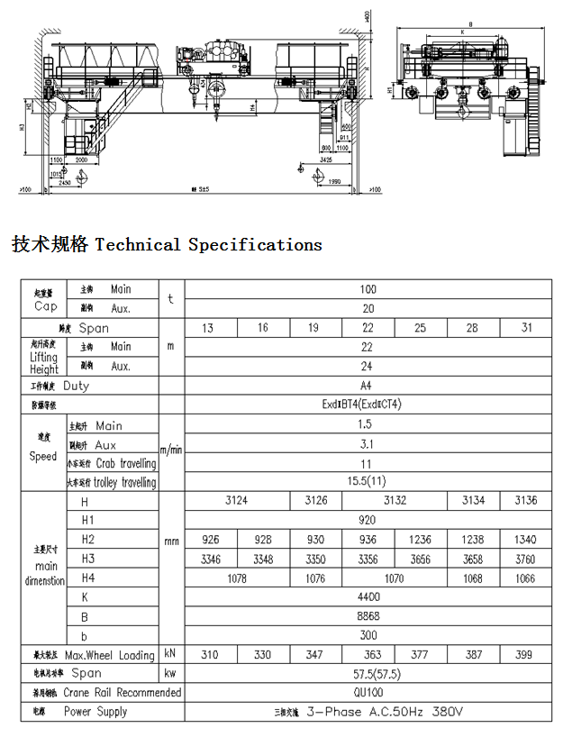 QB型5~100/20噸防爆吊鉤橋式起重機(jī)